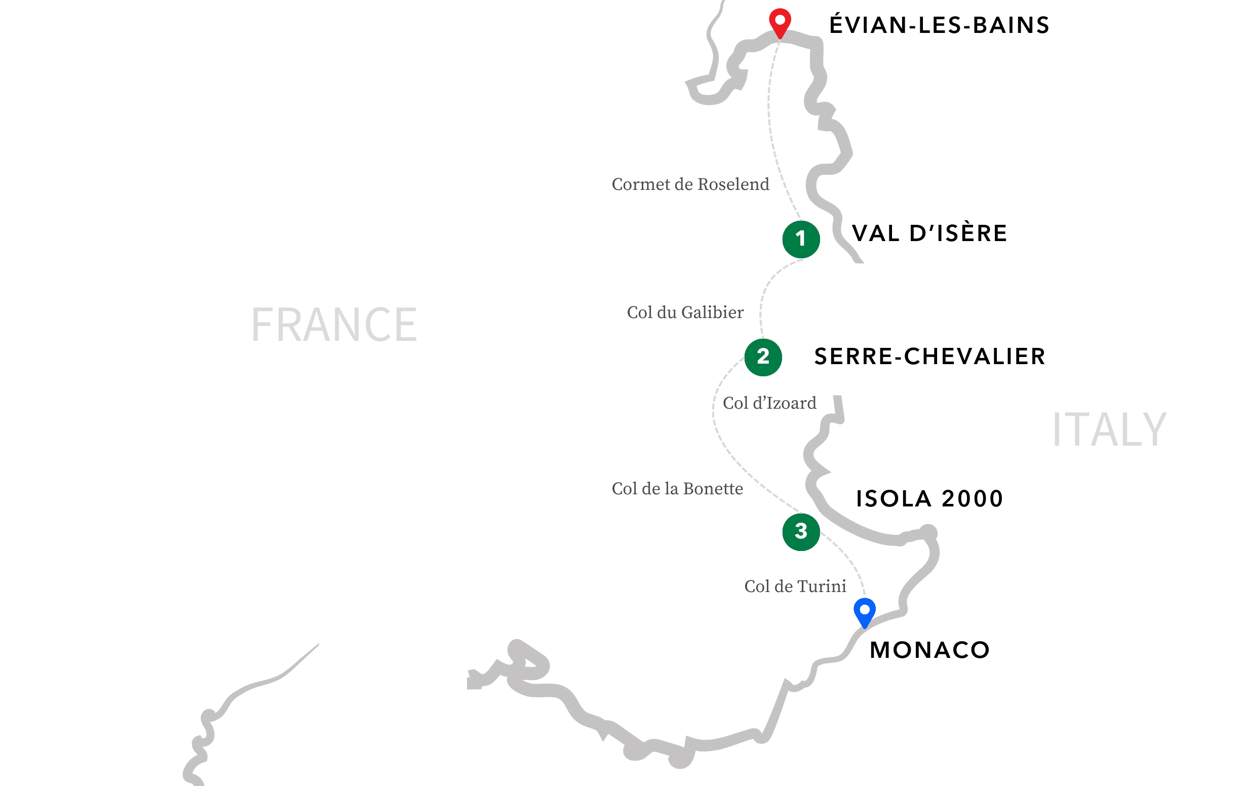 - Tour starts in Évian-les-Bains